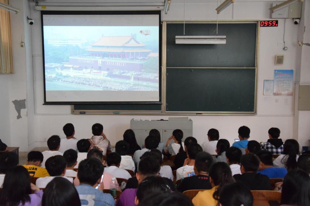 10月1日上午,在北校区知达楼3J2C102教室,公司组织假期留校员工集中观看国庆70周年阅兵仪式网络直播。