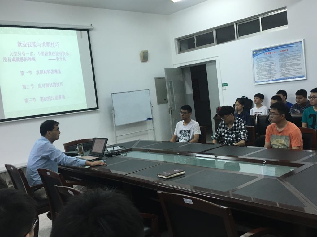 为指导公司毕业生积极参加盐城市新能源产业人才招聘会,掌握求职应聘技巧,9月4日下午,在北校区知达楼第一会议室,公司开展就业技能与求职技巧指导讲座。公司党委书记陈志华主讲,2016级新能源材料与器件相关专业毕业生参与。
