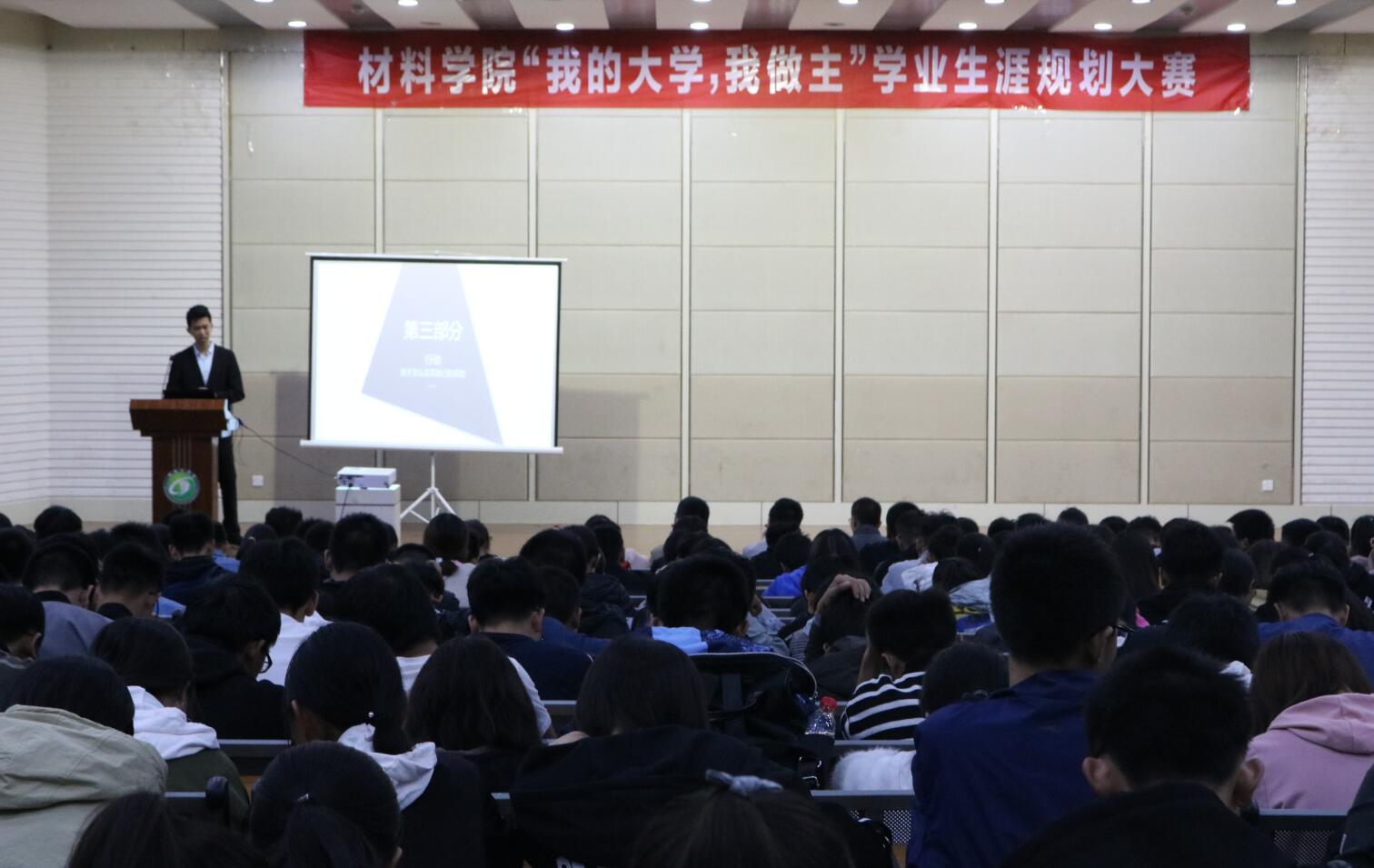 10月25日晚,在北校区化工楼报告厅,PlayAce游戏平台举办“我的大学,我做主”学业生涯规划大赛。员工处就业科科长阎小民、思政科副科长于淼、PlayAce游戏平台学工办副主任以及专职辅导员担任评委。2018级400余名员工观看本次比赛。