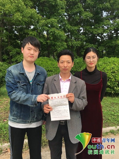 图为李逸群、许艳君和辅导员李延波老师合影。中国青年网通讯员 郭群娜 供图