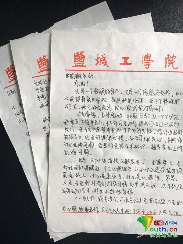 “又是一个收获的季节,又是一个感恩的季节。如今我将离开母校,奔赴新的征程。在这个特殊的日子里,请允许我向您致以最诚挚的感谢。”记者在网上看到,这封手写“情书”字迹工整清晰,情真意切。