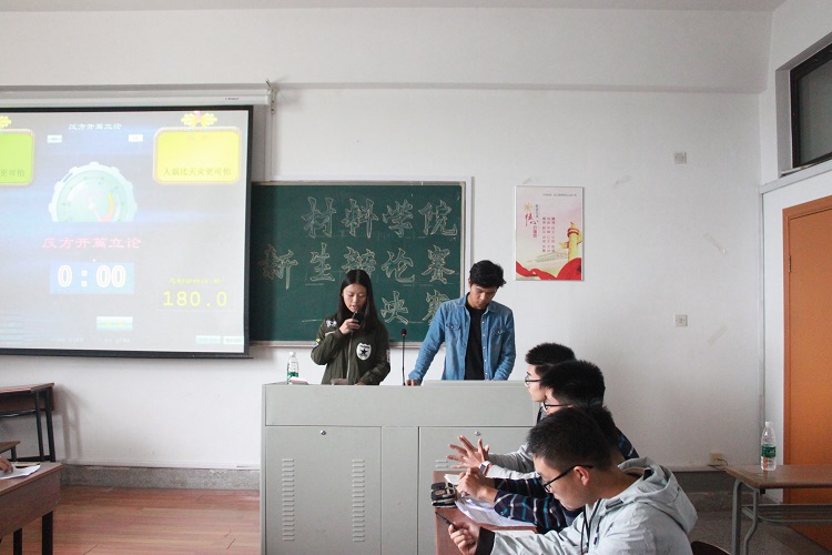 在前期初赛、半决赛的激烈角逐后,优秀的选手进入了总决赛。正方代表队由B材料1702班、B材料1703、B材料1705班的四名同学组成,而反方则由B材料1710班、B材料1711班、B材料1712班四名同学组成。正反方围绕“人祸与天灾哪个更可怕?”辩题而展开辩论。最终,正方取得了比赛的胜利,反方二辩获得最佳辩手。