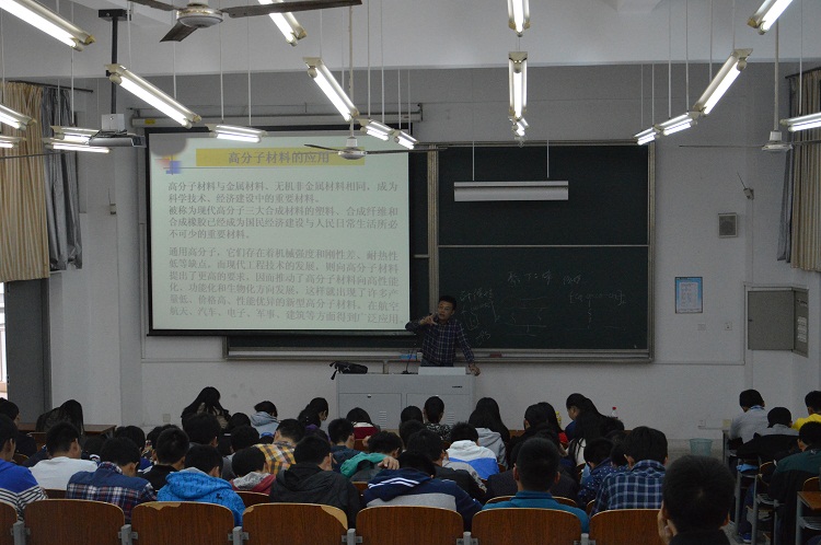 刘方副教授以《高分子科学发展史及应用》为题,介绍了高分子材料的种类、科学发展史,重点讲解了高分子材料的研究动向、我国高分子材料科学的现状和发展展望。他指出,高分子材料在国计民生中是必不可少的,在将来会发挥越来越重要的作用。
