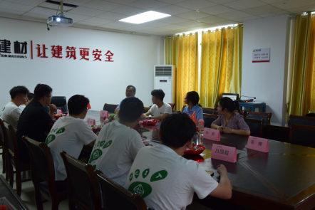 交流会上,淮安建华向实践团成员们展示了2020年集团宣传片、2020年集团活动视频、建华建材2022届校招宣传PPT。从PPT及视频中成员们了解了建华建材公司的文化背景,以及公司曾隆重举办的具有企业文化特色的结婚庆典、高管的太太会议等等。也了解到了建华建材公司主要是两方面发展,一个是从政路线,一个是科研路线。简单点也就是一个主要是从事管理方面,一个主要是从事技术方面。交流会的最后,实践团成员与企业双方就老员工提出的未来工作岗位、晋升发展、公司生活等相关问题进行了讨论交流。对公司的晋升途径、空间、时间也有了初步的了解。成员们了解到近几年建华建材公司对在校老员工的招聘力度逐年扩大,企业明确知道自己需要的是什么样的人才,因此目标群体更为精确,不会错过任何一个有能力的人。