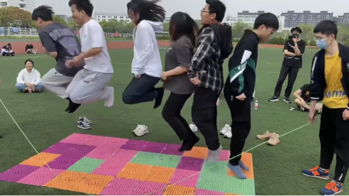 素拓活动以班级为单位开展,班委成员提前策划游戏活动,班级内部分组进行比赛。同学们精神饱满,信心十足。游戏过程中,大家齐心协力,势均力敌,欢呼声一片。指压板的疼痛阻挡不住同学们必胜的信念,被捆绑在一起的脚腕束缚不住同学们坚定的意志,施展最强的表演技能传递信息给队友,用力奔跑为己方争得先机!