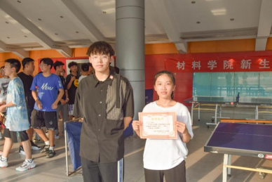 比赛分男、女组以单打形式进行,采用单局淘汰制。一声哨声响起,参赛选手们快速进入状态,你来我往,你推我挡,各自灵活地挥舞着球拍,一时间打得难解难分。汗水滴落在地面上,球拍与乒乓球急速擦过发出的声音像是在为参赛选手们欢呼喝彩。他们球拍紧握,他们屏息凝神,他们将乒乓球全神贯注抛起,抽拉,旋转……着一系列动作行云流水,选手们的球技愈发精彩,气势愈发势不可挡!经过近三个小时的激烈角逐,蔡文军和於斯雅同学技压群雄分别获得男、女单打冠军。
