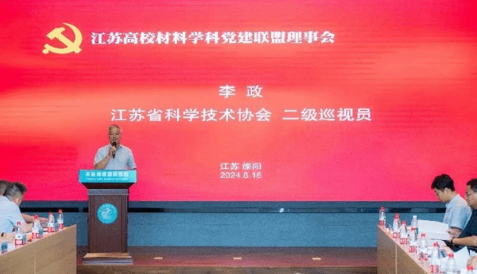 8月16日上午,江苏高校材料学科党建联盟理事会在溧阳召开,并举办党建引领产业创新发展论坛。出席江苏高校材料学科党联盟理事会的领导有江苏省科学技术协会二级巡视员李政,常州市科协党组书记、主席任洪兴,省材料学会秘书长强星以及各有关高校材料学科党建工作负责人。公司党委书记唐浩、副经理王金山出席了会议。江苏高校材料学科党建联盟理事会由南京工业大学公司党委书记高树军主持。