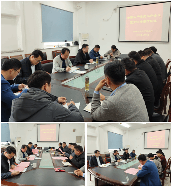 会上,公司领导分别与各科室负责人、专业系主任签订了《全面从严治党与党风廉政建设责任书》、《意识形态和政治安全工作责任书》、《安全稳定工作责任书》。