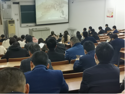 公司全体教职工在知达楼A115观看《百炼成钢》