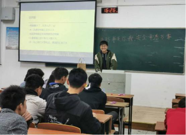 秋末冬初,风干物燥,各班级将防火工作提高到了重要位置。本次活动由孙鹏同学对消防安全知识及消防器材的使用方法及注意事项进行全面、系统的讲解,并以消防知识竞答等方式让同学们牢记消防安全的必要性及一些基本的火场自救技能。深入阐述了消防工作事关生命财产安全,开展消防宣传活动,对预防和遏制火灾事故,维护校园安全的重大意义。