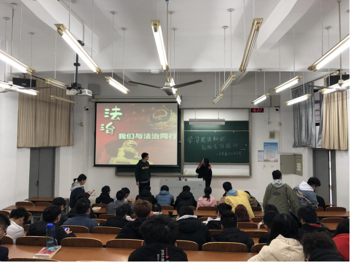 2019年11月29日下午16:00-17:00,PlayAce官方网站PlayAce游戏平台金属1902团支部以“推进依法治国”为主题的团日活动在知达楼3J2C 204教室成功举办。本次活动由陶乐天和杨馨悦两名同学主持,金属1901和1902全体同学参与。