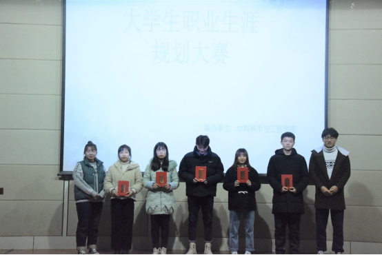14名决赛选手以PPT汇报展示的形式,从自我分析、就业环境分析、自身职业定位以及未来规划这四个方面进行展示,既有对所学专业的深入分析,也有基于自身能力的评价,入情入理,畅想青春。最终复材191钟小龙、E材料191金亚荣获一等奖,金属191叶於龙、E材料192张金龙、材物191张晓焱、高分子191郎梦清、能材192张吴娟荣获二等奖,材料193贾祎、材料194周静蕾、交通192朱丽君、高分子192常丹丹、能材191徐成、金属192农春僖、能材193朱飞荣获三等奖。