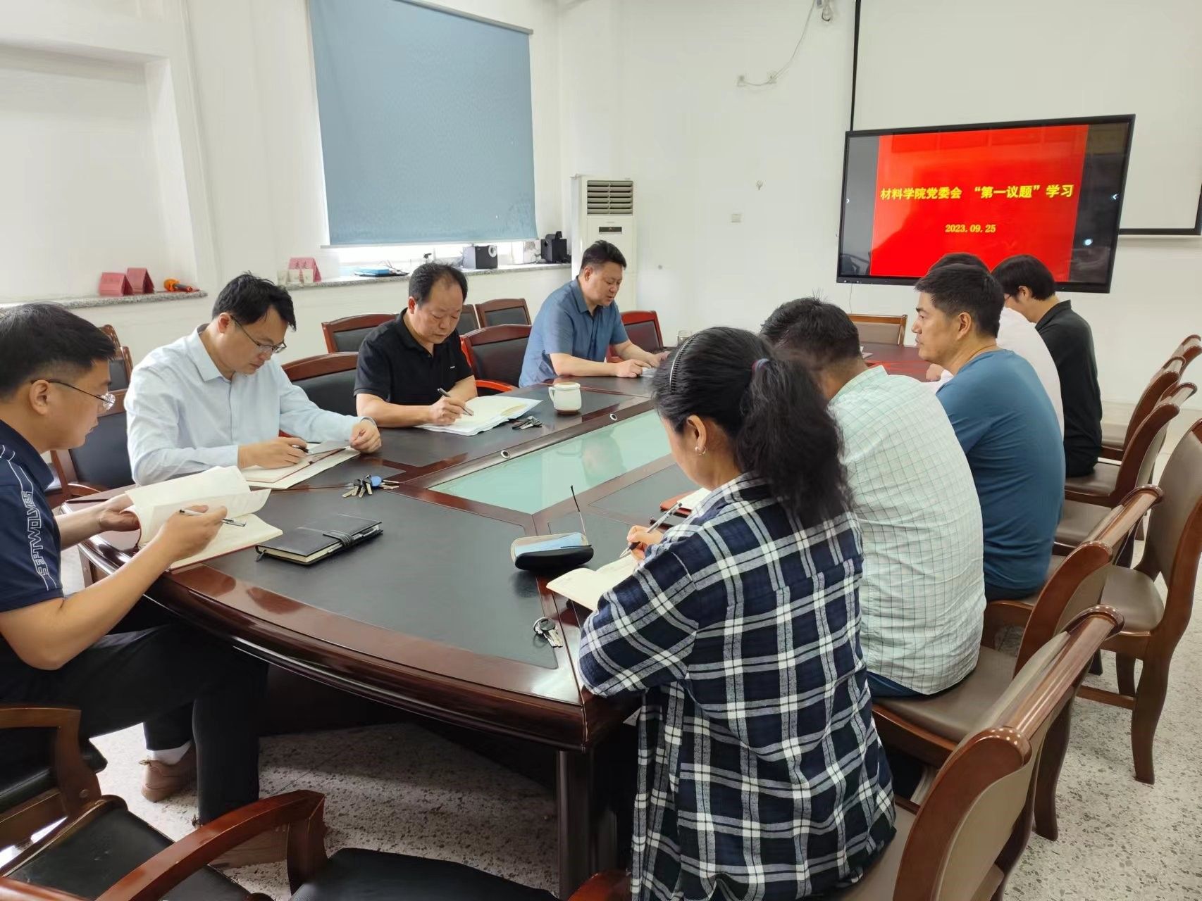 9月15日上午,在北校区知达楼B314会议室,公司党委会以“第一议题”形式,认真学习习近平就推进新型工业化作出的重要指示和习近平复信美中航空遗产基金会主席和飞虎队老兵主要精神。公司党委书记唐浩主持会议,副经理罗驹华(主持工作)、副书记朱凌、全体党委委员、各支部书记参加会议。