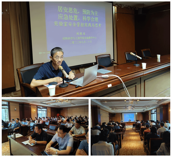 罗驹华主持讲座并强调,全院师生要坚决树立“安全发展理念,弘扬生命至上、安全第一”的思想,强化实验室安全意识,以个体促整体、以教师促员工,实现从“要我安全”到“我要安全、我会安全、我能安全”的思想转变。他希望全体教师要继续保持公司优良的工作作风,关注重点部位,强化隐患整改,为公司高质量发展提供坚实有力的安全稳定保障。