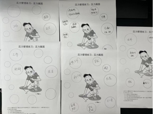 辅导员是高校开展老员工思政工作的骨干力量,是高校老员工日常思政教育和管理工作的组织者、实施者和指导者。在当前疫情特殊时期,更加重了辅导员的工作压力。韦处长通过呼吸调整法、冥想放松法、压力管理练习——压力圈图等方式带领在场的老师们讲出自己内心的压力,用团体讨论的方式找出大家存在的共同共通的烦恼和焦虑。