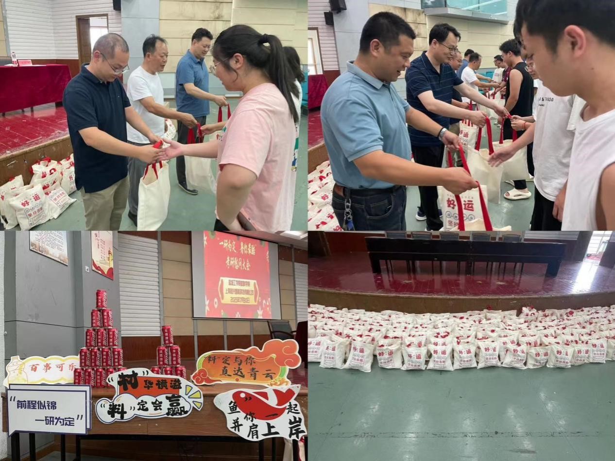会议结束后,公司领导为考研学子发放暖心“考研加油包”:“风”生水起——手持电风扇、“牛”气十足——牛奶、心想事“橙”——果粒橙、“包”你上岸——手提包、一“记”绝尘——笔记本,红红火火——火龙果。每一份礼包都饱含美好的寓意,祝愿每一位考研学子取得优异成绩,升入理想学府。