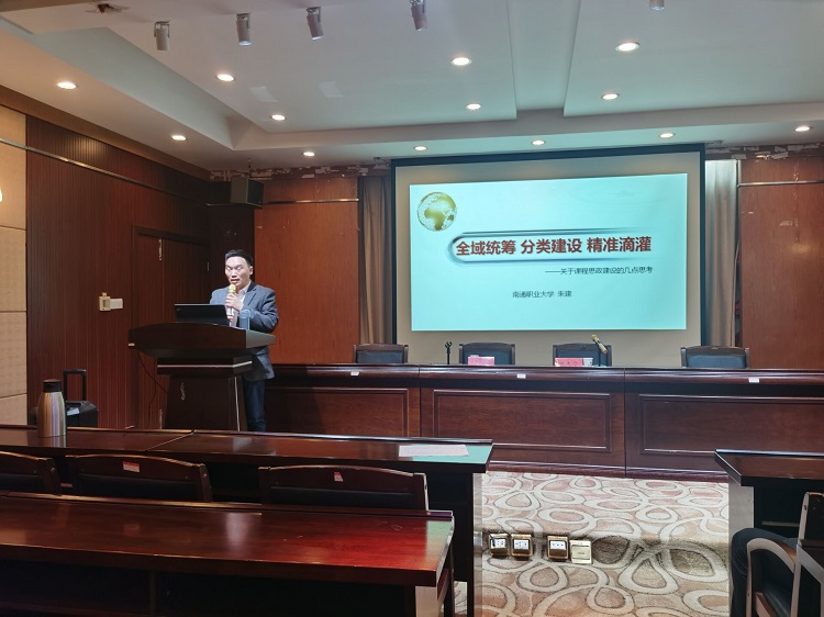 11月13日下午,在北校区化工楼重点实验室报告厅,公司邀请南通职业大学马克思主义公司朱建副教授作《全域统筹 分类建设 精准滴灌》课程思政建设的讲座。公司党委书记陈志华主持,专业课教师近50人参加。