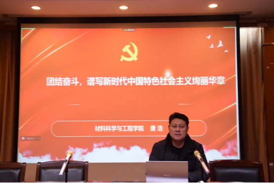 12月8日晚,在北校区化工楼重点实验室报告厅,公司党委宣讲团成员、公司党委书记唐浩作题为“团结奋斗,谱写新时代中国特色社会主义绚丽华章”的宣讲报告。报告采取线上和线下结合的方式,员工党员、班级团支书、员工会主要干部、积极分子等300余人参加。