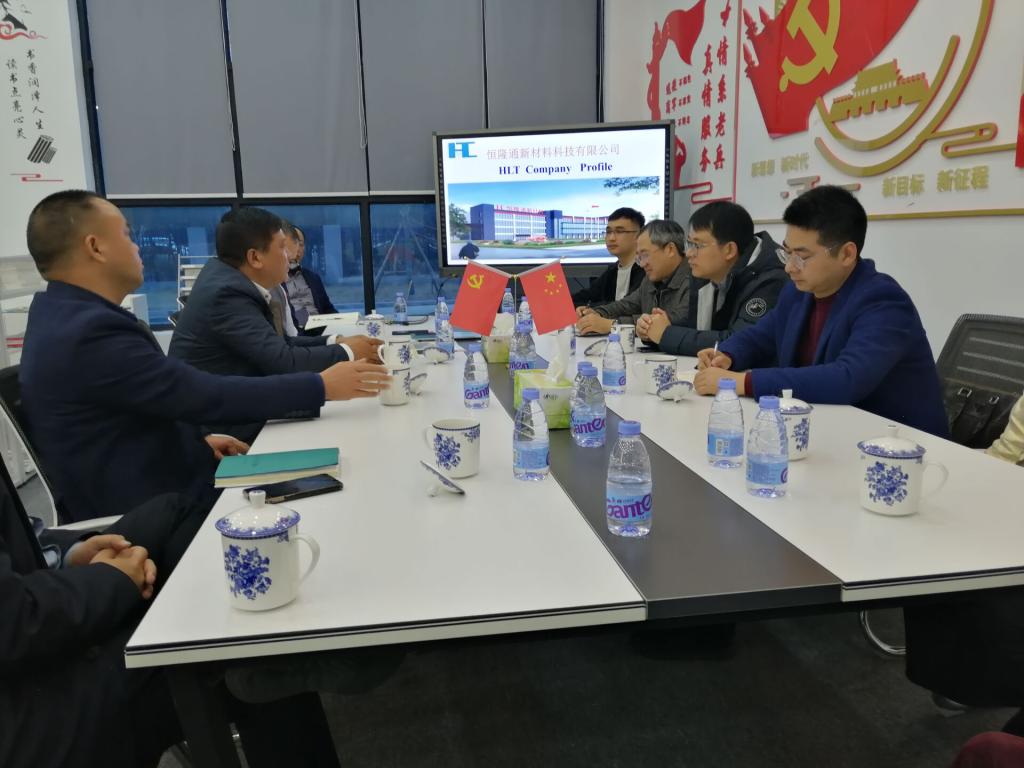 交流仪式前,PlayAce游戏平台经理奚新国在江苏恒隆通新材料科技有限公司的技术负责人的介绍下,参观了该企业的经营发展史、主营产品情况、企业文化和生产车间运行等情况。
