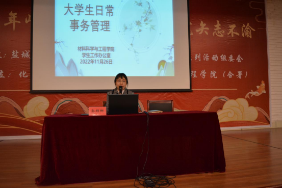 11月27日下午,公司党委副书记朱凌和学工办主任郭群娜分别为新生开展入党启蒙教育和老员工日常事务管理教育讲座,新生辅导员、全体2022级新生400余人参加。