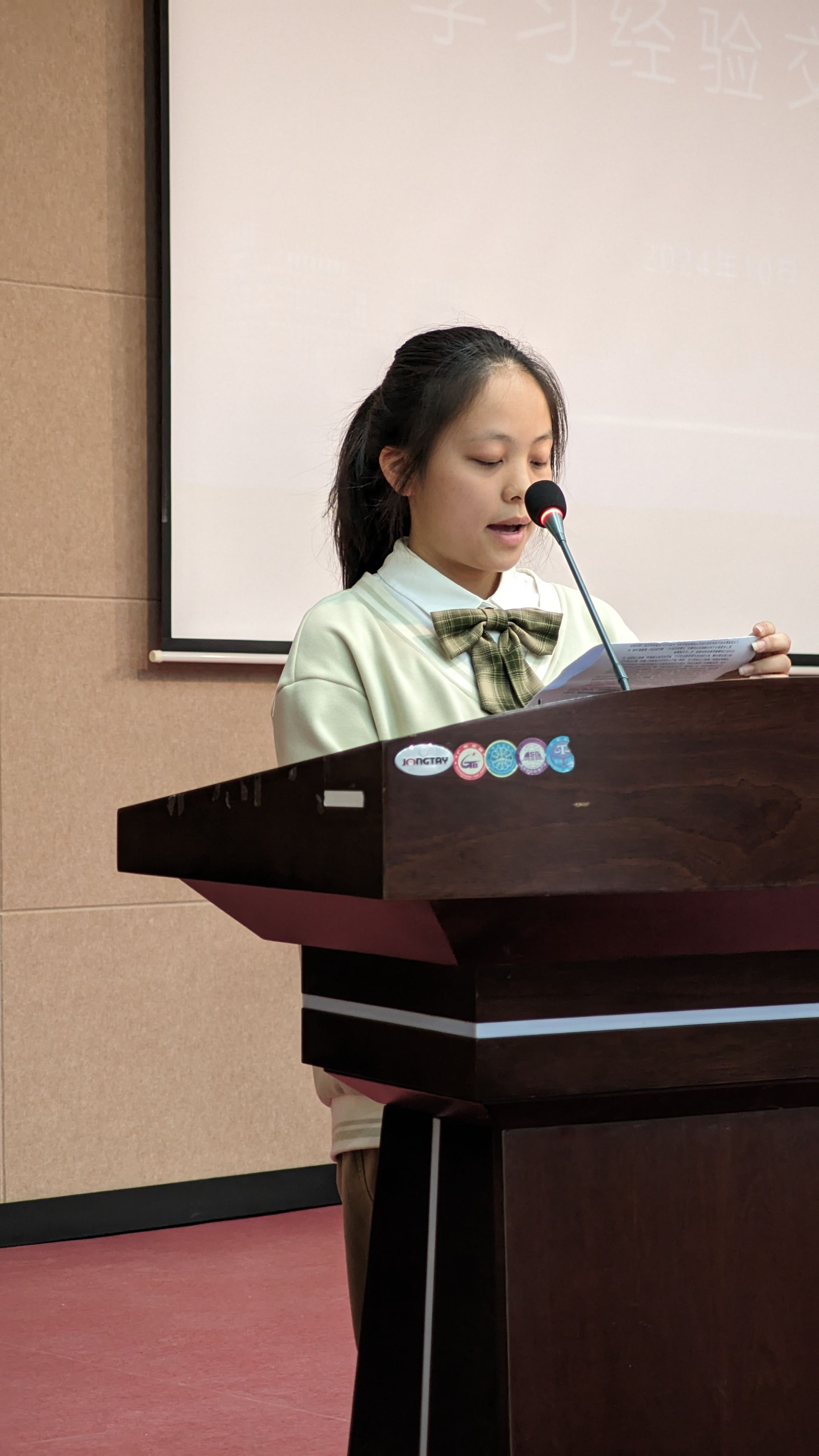 2023级本科生优秀员工代表,英语四级最高分获得者、B金属232班谭俊同学,高数(上和下)课程总分第一名、文化成绩和总评均专业第一名的居姝婧同学上台发言,分别从英语四六级考试、高数学习及其他课程学习等方面讲述了自己的学习经验和心得体会。