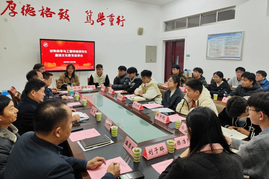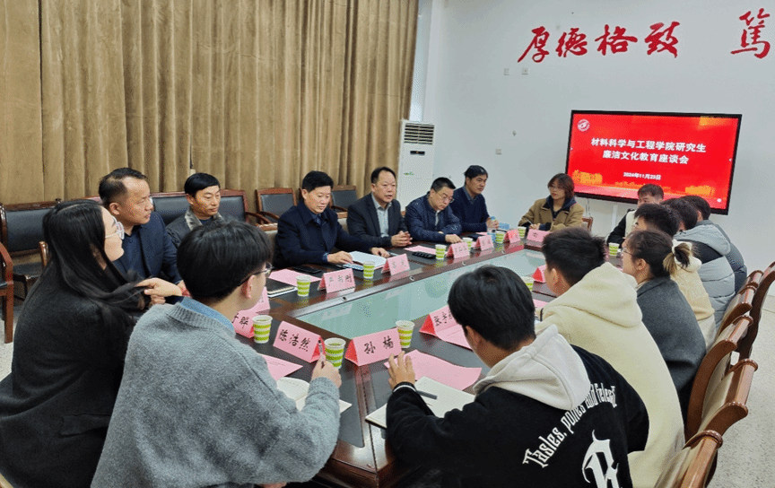 在交流提问环节,刘超向与会嘉宾介绍了研究生情况,并鼓励在座的研究生积极交流、畅所欲言。现场氛围十分融洽,同学们分别就学术道德、学术诚信、员工组织廉洁文化建设等话题进行探讨,在座的员工、领导也热情地进行了答疑解惑。研究生们纷纷表示,本次座谈会让他们受益匪浅。