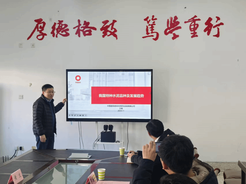 王敏教授详细阐述了我国特种水泥的定义、历史沿革及科学家们的奋斗精神,并介绍了特种水泥的多个应用领域和未来发展方向。报告内容丰富,数据详实,既拓宽了师生们的学术视野,更为相关研究提供了新思路。在随后的交流环节中,王敏与公司师生就人才培养、团队建设及项目合作等方面展开了深入探讨。他鼓励无机非金属相关专业研究生继续攻读博士学位,并欢迎青年教师前往中国建筑材料科学研究总院访学。另外还就特种水泥技术瓶颈及潜在解决方案等问题进行了热烈讨论。