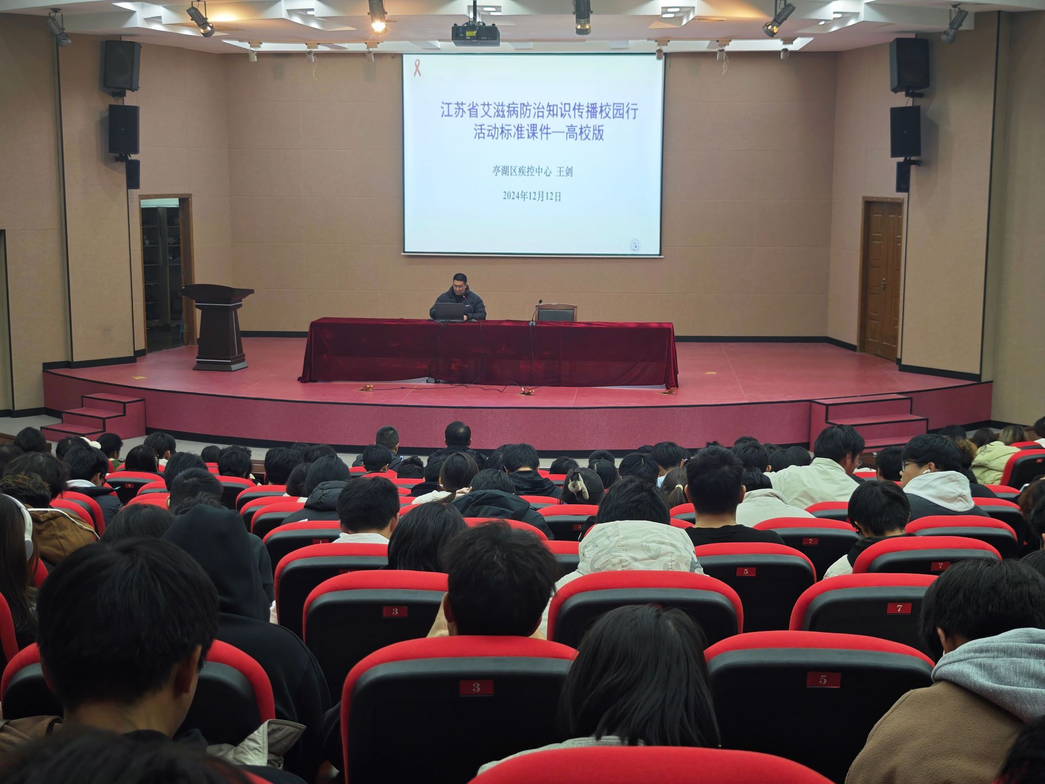 王剑凭借深厚的专业知识和丰富的实践经验,向同学们细致全面地介绍了艾滋病的发病机理、传播途径、感染症状、预防措施以及江苏省的防艾形势等,并通过生动的案例和数据,让同学们深刻认识到艾滋病对个人、家庭和社会的巨大危害。他还特别提醒同学们,保持良好的生活习惯和健康的心态也是预防艾滋病的重要手段。