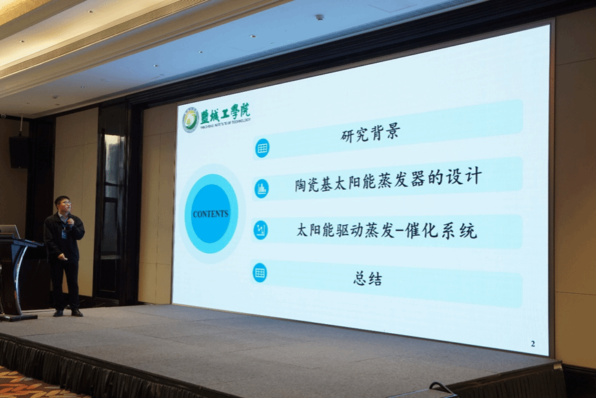 殷佳梁在特种陶瓷材料分会场作了题为“陶瓷材料在太阳能驱动界面蒸发系统中的应用”的报告,分享了陶瓷材料在太阳能热利用方面的相关应用。