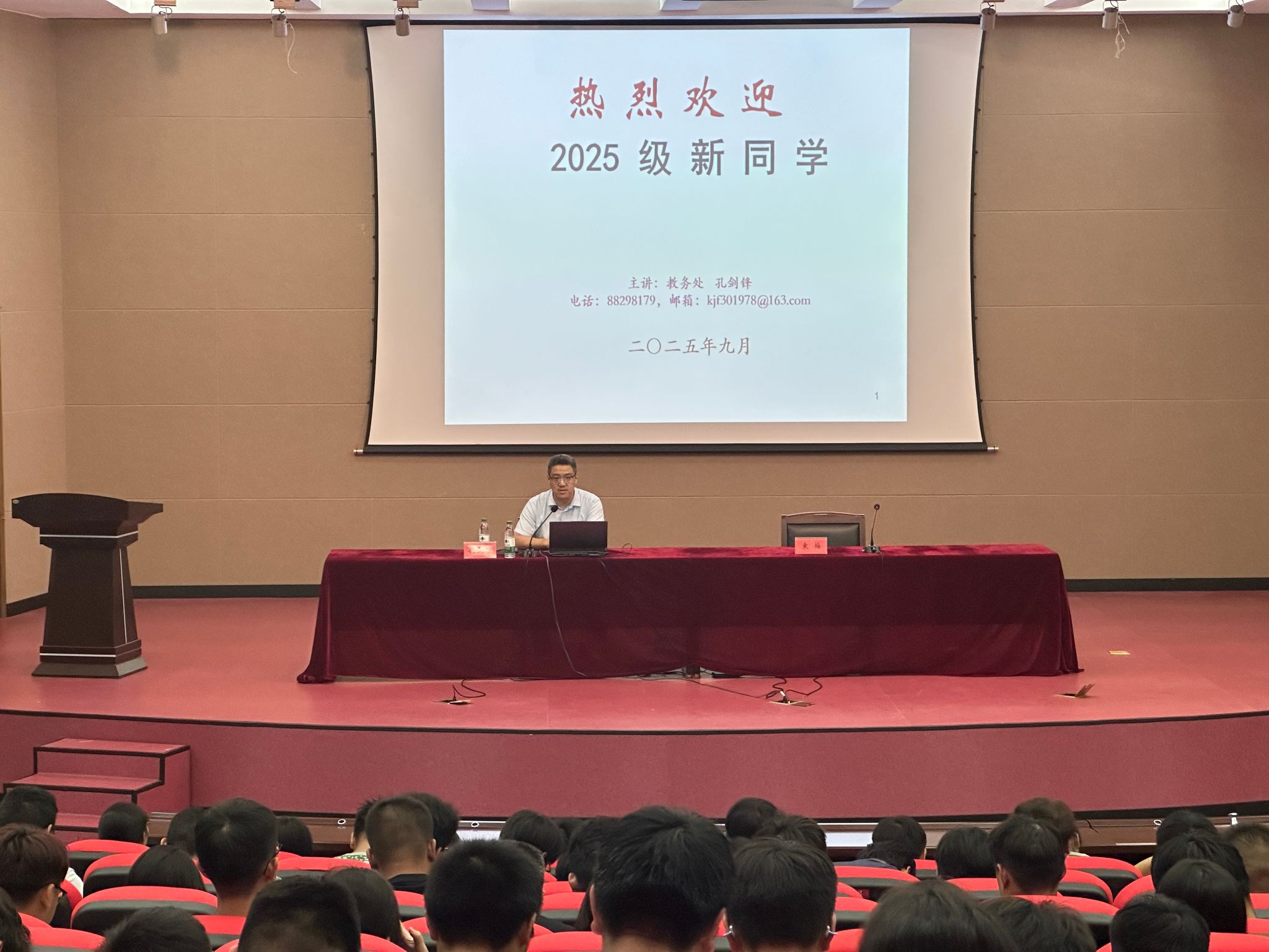 孔剑锋从课程考试与成绩记载、休学与复学、退学及毕业四个方面着手开展学籍管理教育,讲解了课程学习和选课注意事项、学士学位授予办法、学业预警管理办法和考试违规处理办法,解答了新生同学大学学习很容易遇到的困惑问题。他通过老员工考试作弊成本核算,清晰展示了考试作弊的严重后果,引起同学们的高度重视。他希望同学们要勤奋学习、善于学习、管理好自己,以良好的精神风貌、严谨的学习态度,锐意进取,努力实现人生目标。