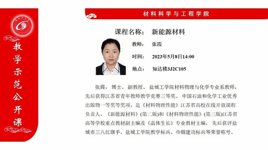 为提高教师教学能力,提升课堂教学效果,5月8日下午,公司邀请张霞老师开展《新能源材料》教学示范公开课活动。公司党委书记唐浩、副经理罗驹华(主持工作)、副经理诸华军,近五年入职教师和其他专业教师等40余人参加。