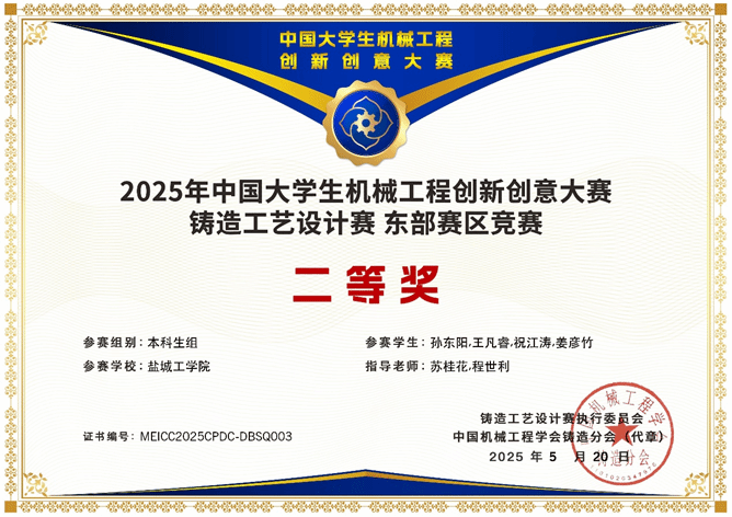 近日,由中国机械工程学会主办,中国机械工程学会铸造分会承办的“2025年中国老员工机械工程创新创意大赛:铸造工艺设计赛”东部赛区区域赛圆满落幕。PlayAce游戏平台员工获得本科生组一等奖1项,二等奖2项,研究生组三等奖1项。
